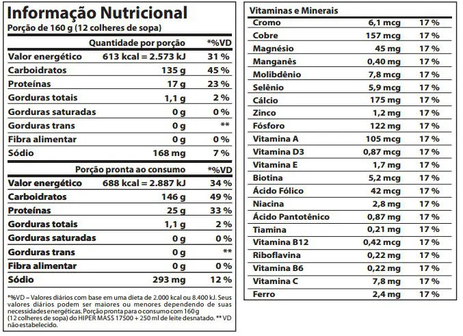• Indicação: suplemento hipercalórico para ganho de massa muscular para atletas ou praticantes intensos.
