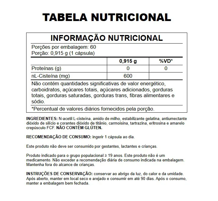 Desde a mais recente mudança na legislação brasileira (2018) estamos observando a inclusão de novas substâncias como suplementos alimentares, a N- Acetil-Cisteína é uma destas substâncias liberadas recentemente pela ANVISA como suplemento pois é segura para saúde, sugerimos apenas que você passe por uma consulta com nutricionista, para diagnosticar a necessidade deste nutriente em sua dieta.